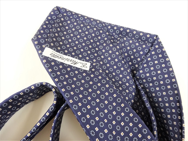 ネイビーベースにアズーロ・エ・マローネの小紋柄、というとまさに王道。