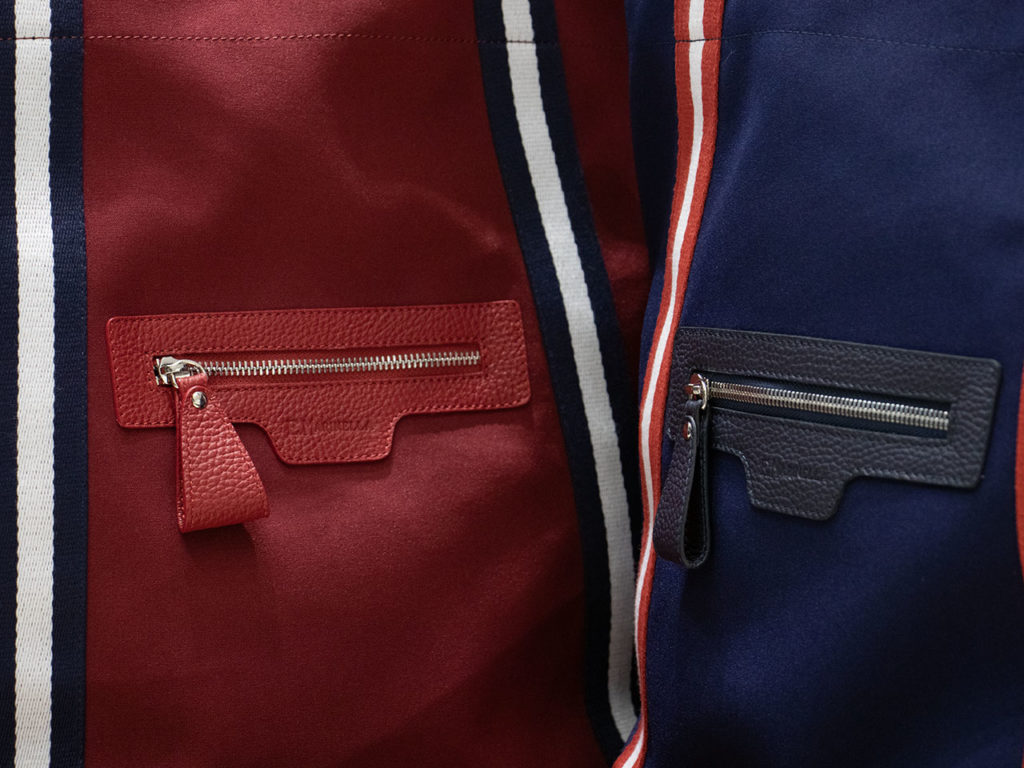 携帯電話や財布等が収納できるポケットは外側と内側に1つずつありとても便利。ポケットのファスナーは本革の大きい引手がポイントになり、上品な雰囲気です。