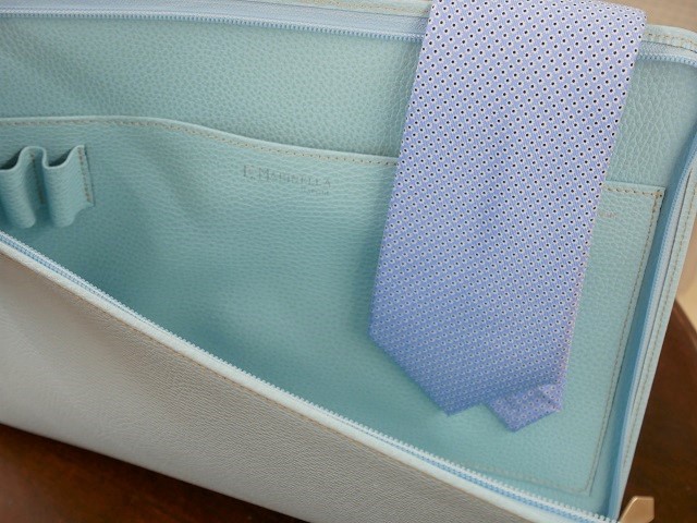 Made in Italyの上質なレザーに美しい発色が際立つシンプルなドキュメントケース。ビジネスシーンに適した控えめで洗練されたデザインは、スーツやジャケパンスタイルと相性良好です。必要最低限のモノをスマートに持ち運べる今の時代にお勧めのアイテムです。