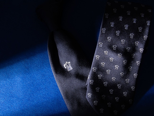 イタリアでは、マキネッタと呼ばれる、直火式のコーヒー抽出機を使用し、エスプレッソとして飲まれることが多いのですが、そのコーヒー抽出機である ”マキネッタ” をモチーフにしたタイが到着致しました。