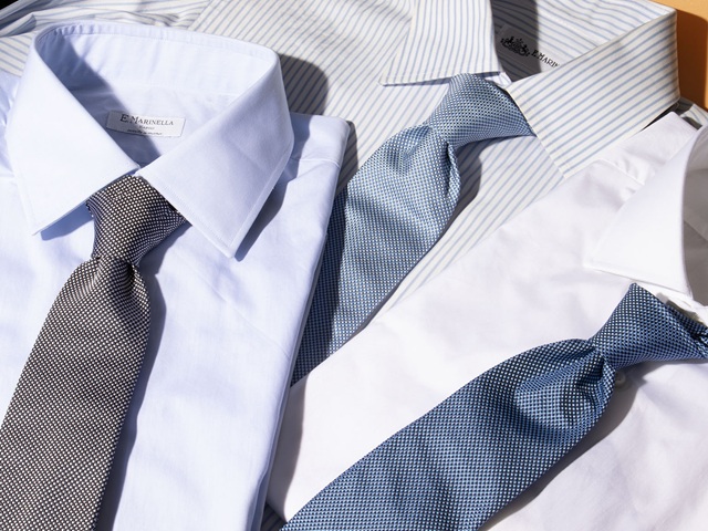 マウリッツィオ・マリネッラや、ナポリ本店のベテランスタッフが時折見せ、その印象の違いにハッとさせられる、カラーシャツとのタイ合わせも、いつものスーツスタイルの雰囲気を一変させる特効薬となりますので、機会がありましたら是非、こちらの▶Holo(ホロ)でお試しください。
