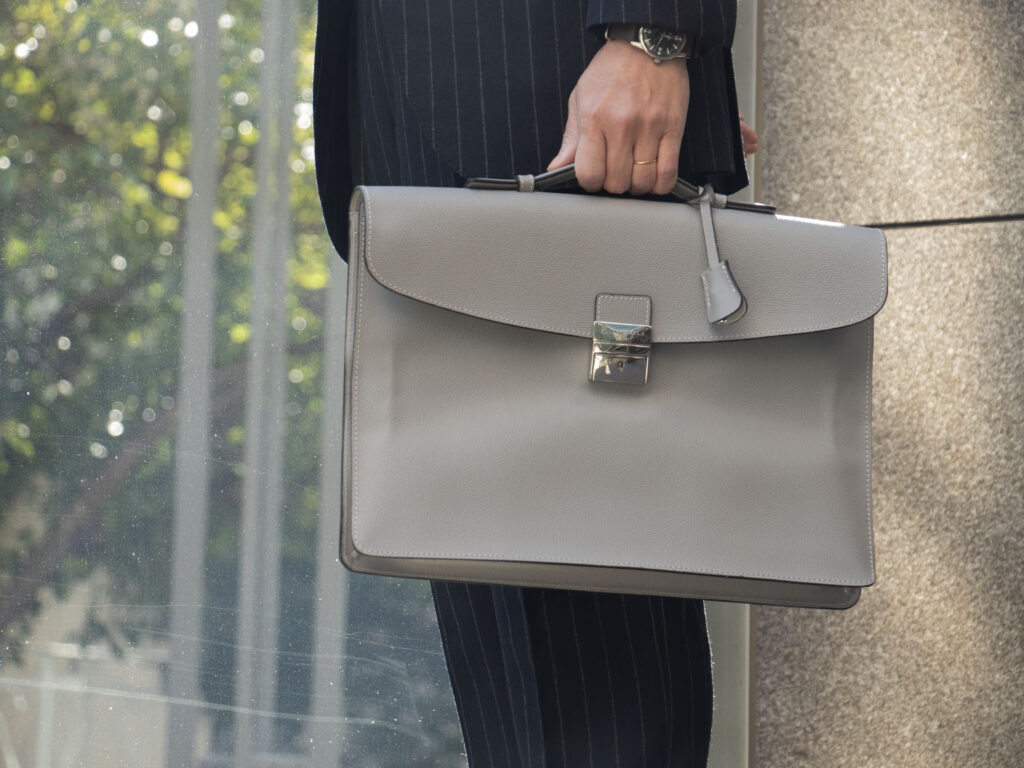 マリネッラ定番人気のレザーアイテム、折り畳み式ブリーフケースのソットブラッチョが、