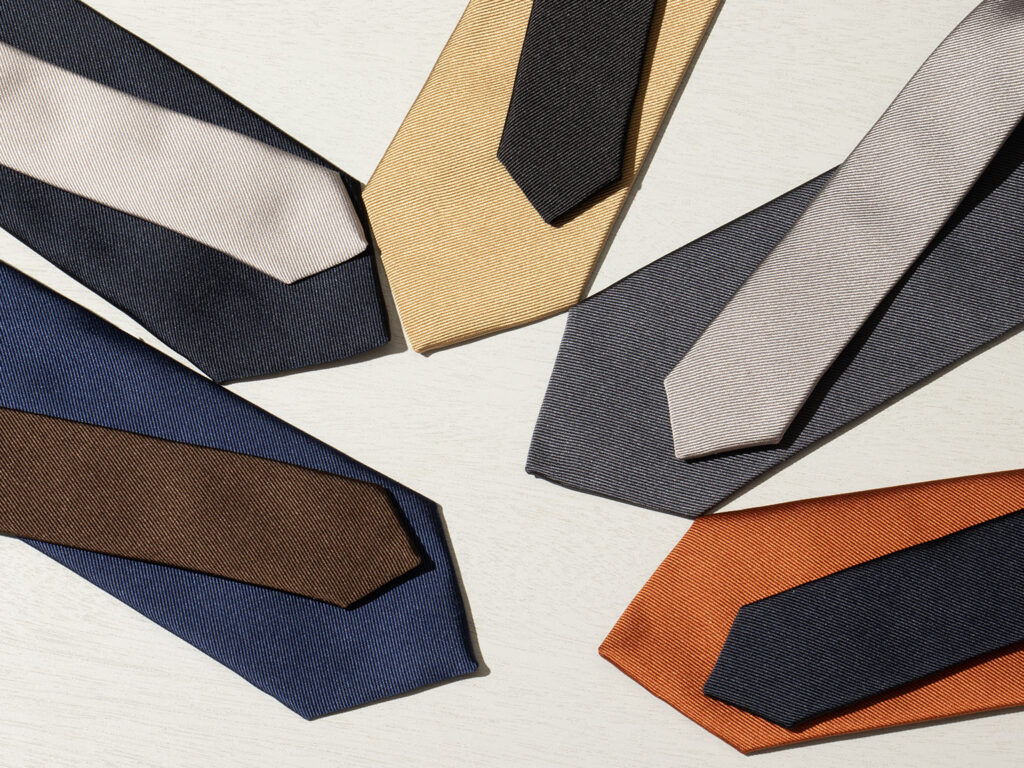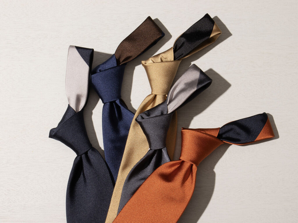 見えないところに拘った、さりげなく特別感のあるバイカラーソリッドタイをご自身用に、また大切な方へのギフトにいかがでしょうか。