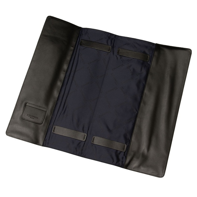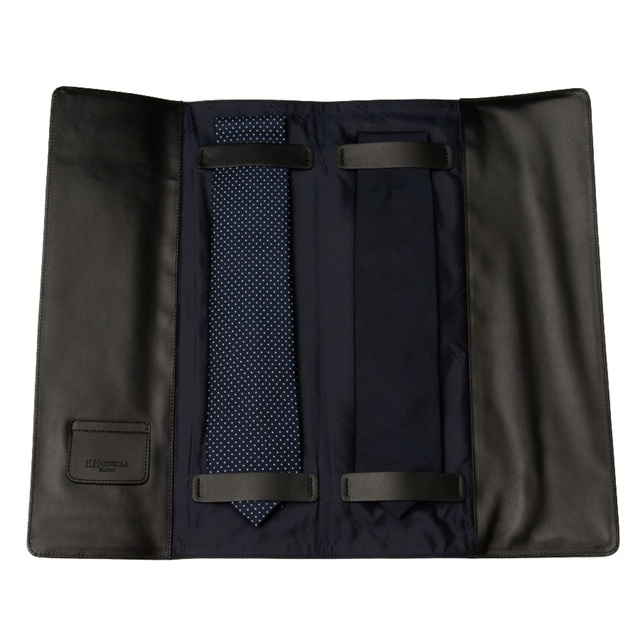 また、2本分のネクタイ収納スペースの他、カフスやタイバーを収納するための小振りな収納ポケットも1つ備え、ネクタイを外的な要因から保護をすると同時に、持ち運びの容易さと、無駄な装飾を排し、上質な素材を用い必要な機能を備えて完成させた、その見た目の美しさと機能にもこだわりを持った、本国イタリアのお客様にも定評のある▶ネクタイケースであります。
