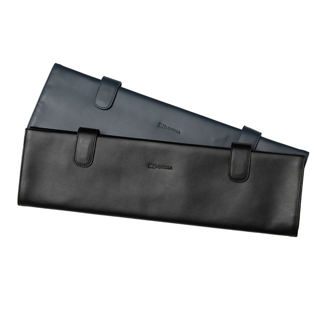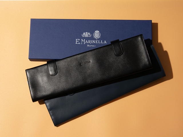 簡易的なポーチや、オーガナイザーでも似たような役目を担うことは可能にも思いますが、天然皮革を贅沢に用い、マリネッラのネクタイを収納し、持ち運ぶことを前提に作られた▶ネクタイケース。