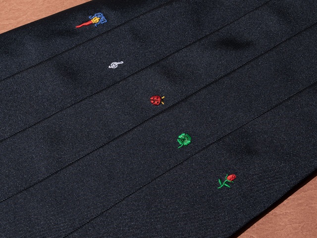 最もベーシックな紺の綾織りのベース地に、ワンポイントのモチーフが刺繍により施されるその柄は、入荷のタイミングにより様々。
